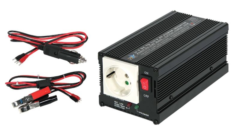 Graças a este inversor de corrente de 12 para 230 volts, poderá dispor de uma tomada para ligar qualquer dispositivo eléctrico, que não consuma mais de 300 wats de potência.