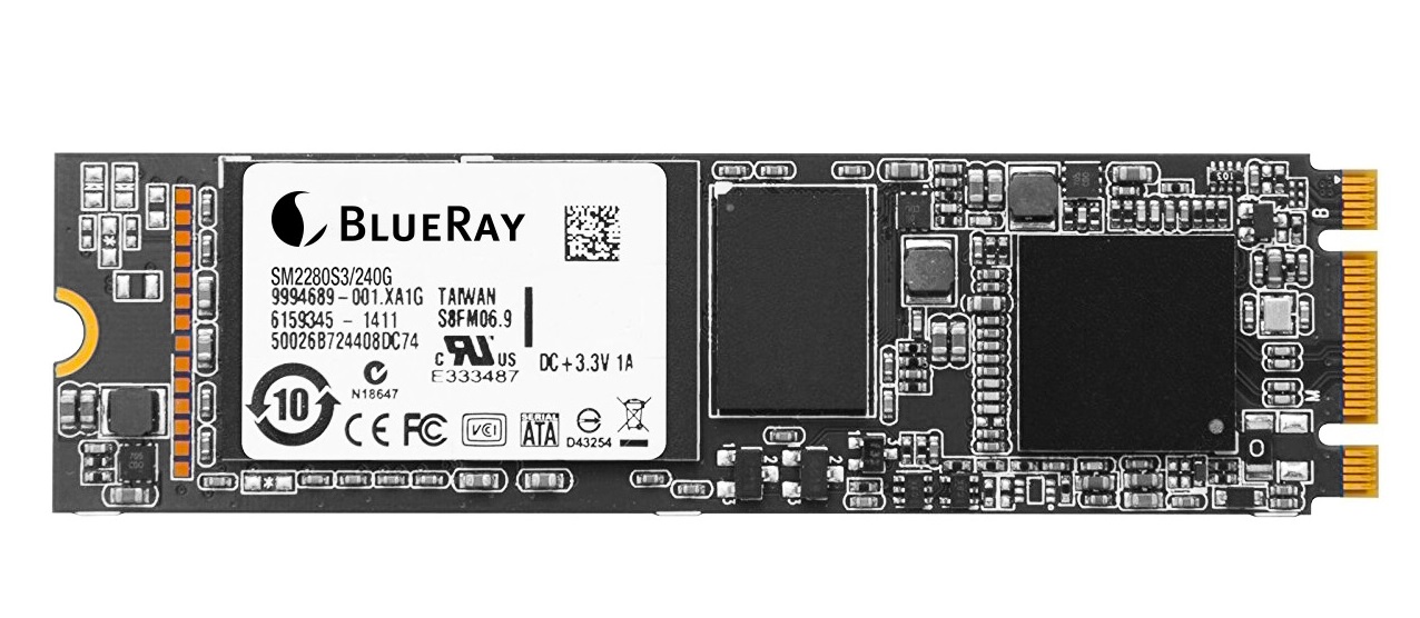 Unidade SSD M.2 2280 da Blueray M12S de 256GB de capacidade com controlador Silicon Motion SM2263XT e memória Intel 3D NAND. Velocidade de leitura até 2400MB/s e escrita até 1700MB/s