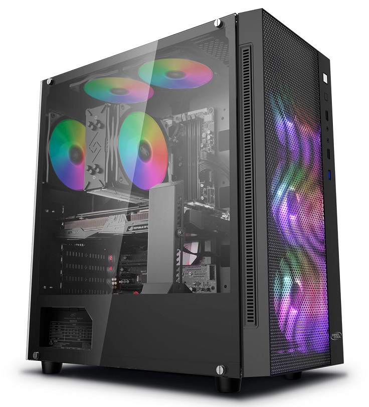Para uma Caixa Mid-Tower, a MATREXX 55 ADD-RGB 4F Mesh é dotada de um amplo espaço que suporta Motherboards E-ATX. Painel frontal em grelha para um maior fluxo de Ar. Com 4 Fans ARGB pré-instaladas que torna o teu sistema não só mais fresco como elegante.