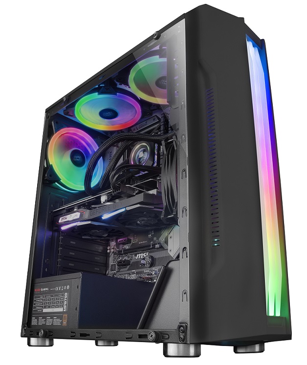 Desenhada com uma frente espetacular com LED RGB triplo sincronizado com uma Fan de 120mm traseira, a MCK é uma torre Mid-Tower de alto desempenho preparada para oferecer tudo que precisas para construir o teu novo setup. Materiais de alta qualidade, painel de vidro temperado e estrutura optimizada.
