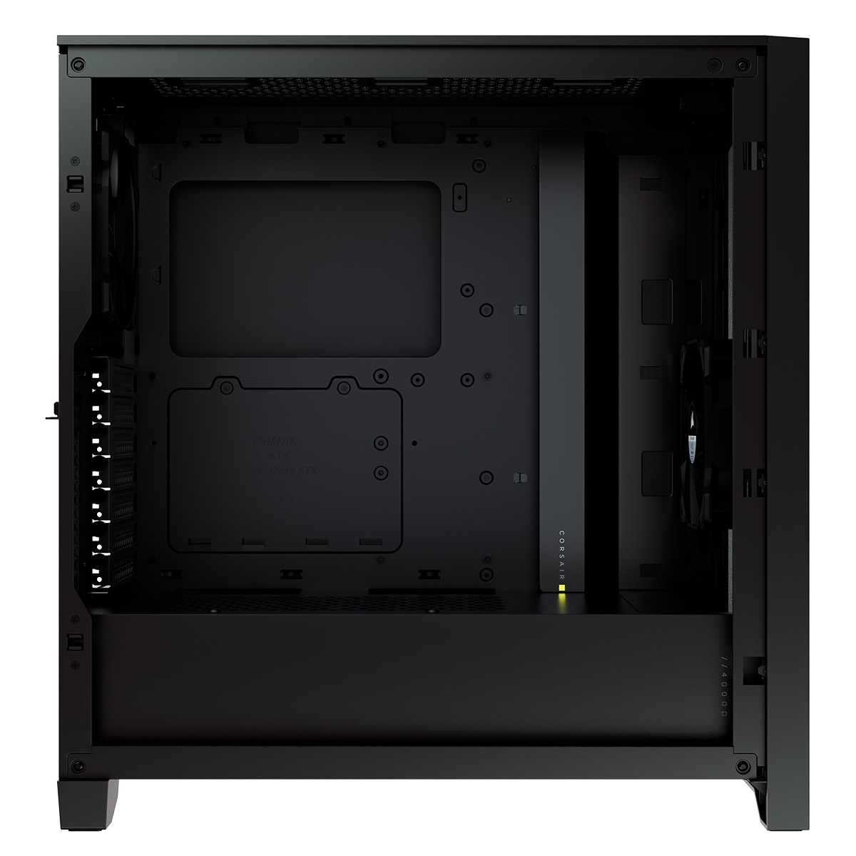 Caixa 4000D da Corsair, minimalista e elegante, com gestão inteligente de arrumação de cabos com design Corsair Rapidroute. Equipada com 2x ventoínhas e possíbilidade de colocação até 6x. Com painel frontal de aço sólido e painel lateral em vidro temperado.