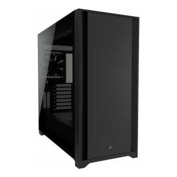 Caixa 5000D da Corsair, simples e elegante, com gestão inteligente de arrumação de cabos e grande potencial de refrigeração. Equipada com 2x ventoínhas e possíbilidade de colocação até 7x. Com painel frontal de aço sólido e painel lateral em vidro temperado.