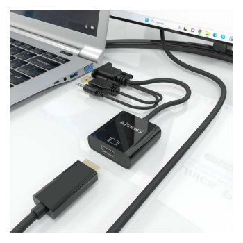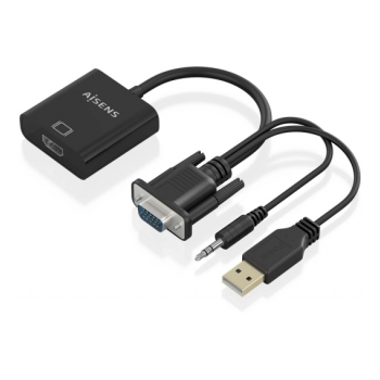 O Cabo Conversor Aisens SVGA + Áudio para HDMI com conectores SVGA macho, Jack 3.5 mm macho, USB-A macho e HDMI fêmea, é a solução ideal para ligar dispositivos com saída VGA a ecrãs HDMI, sem necessidade de atualizar o monitor. Com suporte para resoluções até 1080p e compatibilidade HDCP 1.1, garante uma transmissão de vídeo e áudio eficiente. O design plug and play permite uma instalação fácil e rápida, sem software adicional. Para garantir desempenho ideal em situações de sinal fraco, o conector USB-A fornece alimentação extra. É compacto, fiável e 100% testado.