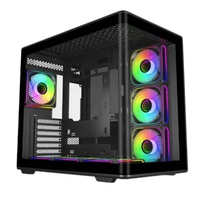 A Cooler Master Elite 600 é uma caixa semitorre elegante e moderna que combina funcionalidade e design premium, ideal para entusiastas de PC, gamers e profissionais. Com um painel lateral panorâmico em vidro temperado curvado, proporciona uma vista deslumbrante dos componentes internos, enquanto os quatro ventiladores RGB de 120 mm garantem uma excelente refrigeração com baixo ruído. A estrutura de dupla câmara com gestão inteligente de cabos assegura um interior limpo e eficiente, e a compatibilidade com vários formatos de motherboard oferece grande flexibilidade na montagem.