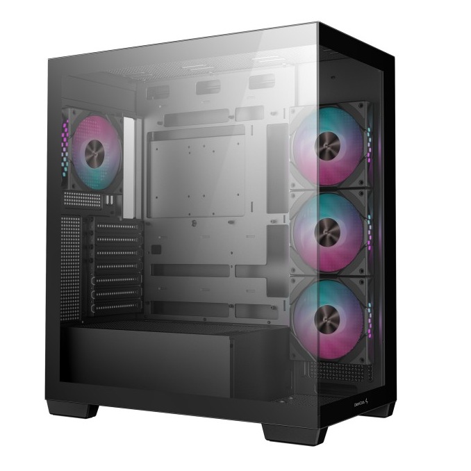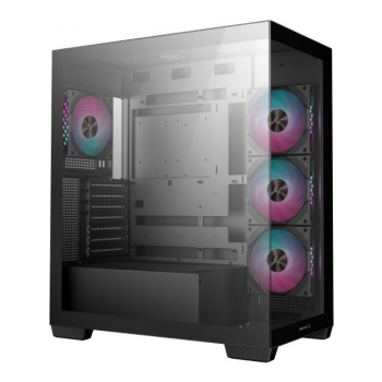 A DeepCool CG580 4F é uma caixa ATX semitorre versátil, ideal para configurações gaming modernas. Com estrutura robusta em aço SGCC e painel lateral em vidro temperado, oferece excelente fluxo de ar graças às quatro ventoinhas de 120 mm ARGB pré-instaladas e suporte total a sistemas de refrigeração líquida até 360 mm. Compatível com motherboards ATX, micro ATX e ITX, apresenta bom espaço interno, filtros de pó removíveis, iluminação RGB e uma estética moderna e funcional.
