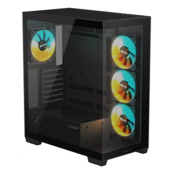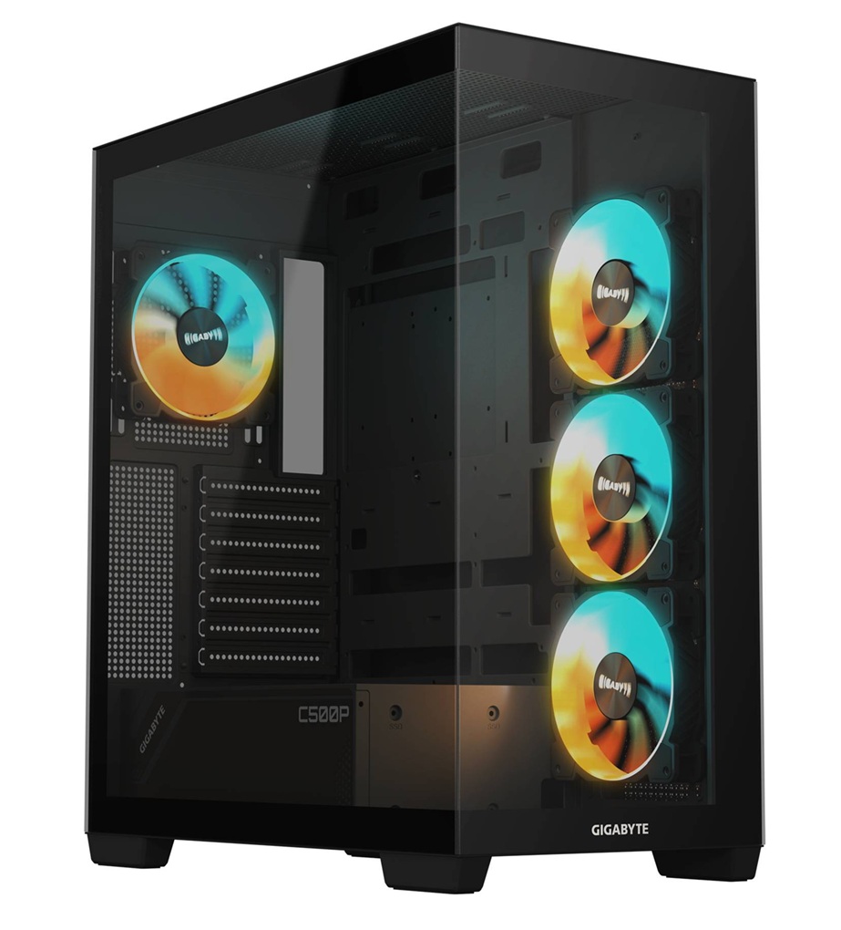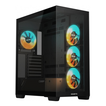 A Gigabyte C500 Panoramic Stealth ARGB é uma caixa ATX semitorre concebida para entusiastas que valorizam estética, refrigeração eficiente e facilidade de montagem. Com painéis de vidro temperado de 4 mm na frente e lateral, oferece uma vista panorâmica de 270° sem perfurações visíveis, realçando a apresentação dos componentes internos. O design ventilado em várias zonas, aliado a quatro ventoinhas ARGB incluídas e suporte a radiadores até 360 mm, garante um fluxo de ar otimizado. Inclui ainda um hub ARGB integrado e filtros de pó magnéticos para manutenção facilitada.