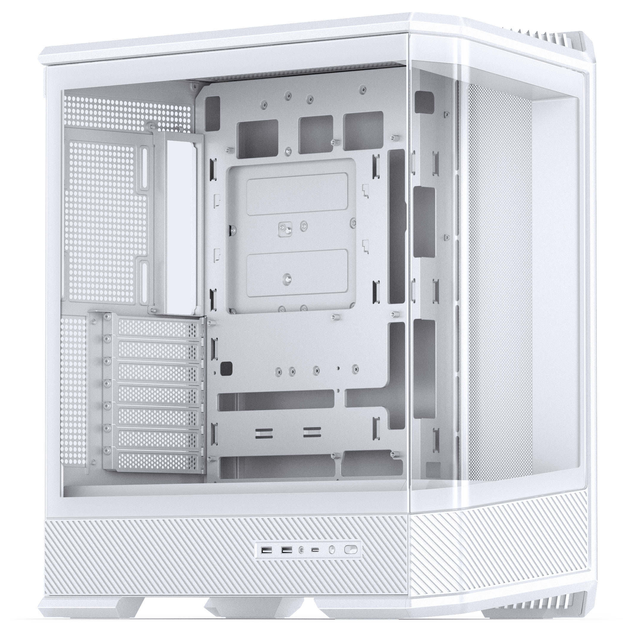 A caixa ATX Jonsbo D400 em branco é uma solução moderna e elegante para setups de alto desempenho, combinando um design minimalista com excelente ventilação e compatibilidade com componentes de grandes dimensões. Feita com materiais premium como aço SPCC/SGCC, plástico ABS e vidro temperado, a D400 oferece não apenas estilo, mas também robustez. Com amplo suporte para até 10 ventoinhas e radiadores de até 360 mm, é ideal tanto para entusiastas de gaming quanto para utilizadores que procuram um chassis eficiente e espaçoso.