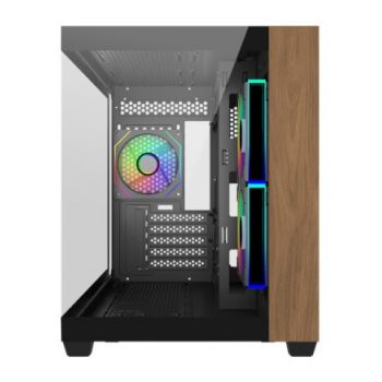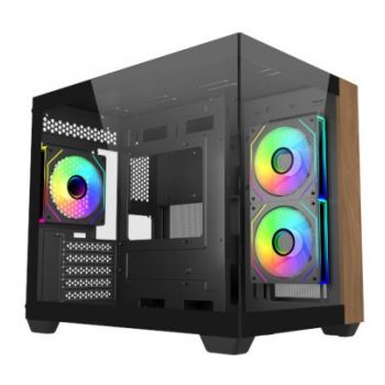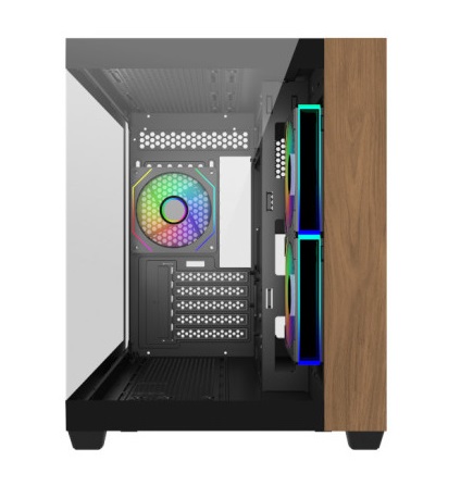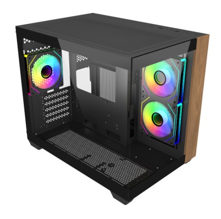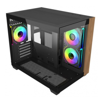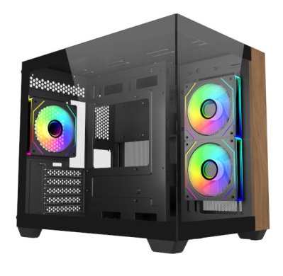 A Elite 481 Wood é uma caixa compacta que alia funcionalidade e design num formato de câmara dupla pensado para setups de alto desempenho. O seu painel frontal em madeira natural e vidro temperado confere-lhe um visual elegante e acolhedor, ideal tanto para ambientes domésticos como para setups gaming com um toque sofisticado. Compatível com motherboards mATX e ITX e preparada para sistemas de refrigeração líquida avançados, oferece uma excelente versatilidade sem comprometer o estilo nem a capacidade de expansão.