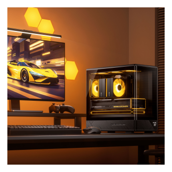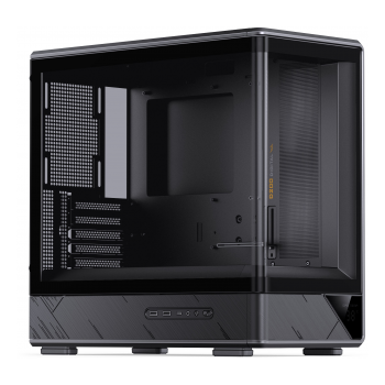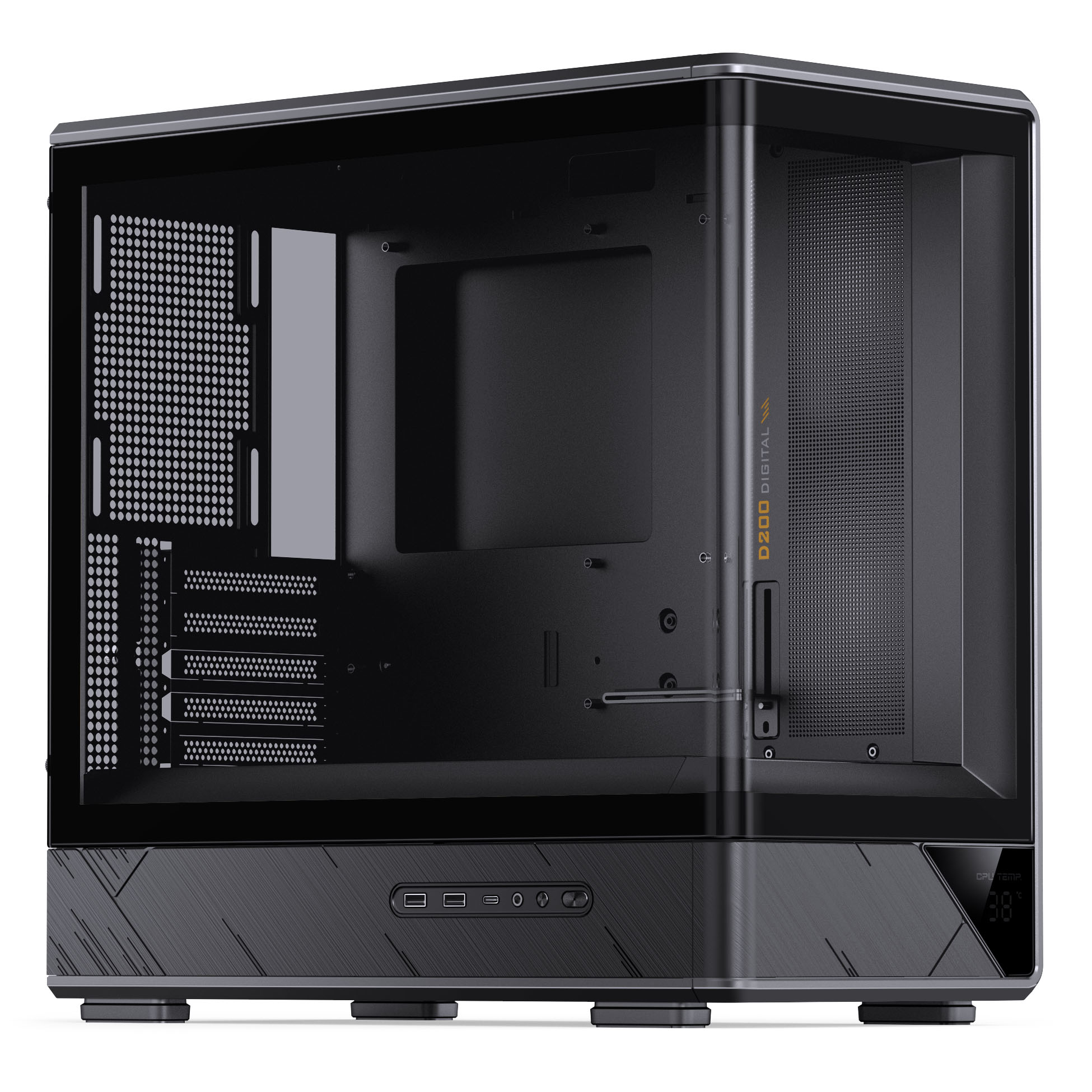 A caixa Micro-ATX Jonsbo D200 Preto combina um design inovador com vidro temperado duplo sem colunas visíveis, oferecendo uma estética panorâmica e clean. Otimizada para motherboards com cablagem oculta, proporciona uma montagem organizada e visualmente impecável. Apesar do tamanho compacto, tem excelente capacidade de refrigeração e compatibilidade com hardware de alto desempenho.
