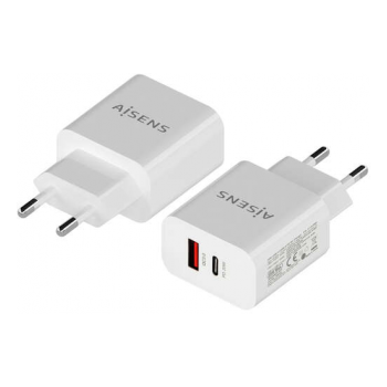 O carregador Aisens 20W em branco é uma solução prática e moderna para carregar dispositivos através de USB-C e USB-A, ideal para smartphones, tablets, câmaras, portáteis e muito mais. Equipado com tecnologia inteligente AI, reconhece automaticamente o protocolo do dispositivo para uma carga rápida e segura. Suporta os principais padrões como PD3.0 e QC3.0, permitindo carregamento simultâneo de dois dispositivos com proteção contra sobrecarga e curto-circuito, oferecendo máxima segurança e eficiência.