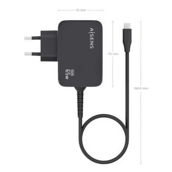 O carregador Aisens GaN USB-C/PD de 65W combina potência, eficiência e portabilidade para fornecer carregamentos rápidos e seguros a uma ampla gama de dispositivos. Com um design moderno e um cabo USB-C de 1,8 metros incluído, é ideal para uso diário, tanto em casa como em viagem. A tecnologia GaN proporciona maior eficiência energética, reduz o calor gerado e permite um formato mais compacto. Inclui um chip inteligente que ajusta automaticamente a saída conforme o dispositivo, garantindo compatibilidade e desempenho. Com suporte para PD3.0, PPS e outros protocolos de carregamento, é uma escolha versátil e fiável.