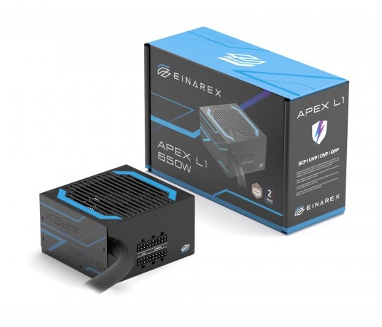 A fonte de alimentação Einarex APEX L1 650W é ideal para quem procura uma solução eficiente, silenciosa e de fácil instalação para o seu sistema. Com design semi-modular e cabos planos, oferece uma montagem organizada e prática, mantendo os conectores principais pré-instalados. Certificada com 80 PLUS Bronze (Cybenetics), garante eficiência energética fiável. A APEX L1 conta com proteções elétricas avançadas e um ventilador HDB de 120 mm que assegura uma operação silenciosa e um bom arrefecimento. É uma excelente escolha para configurações modernas que exigem estabilidade e desempenho contínuo.