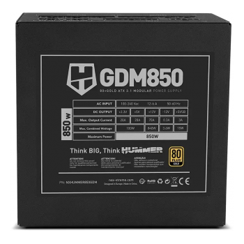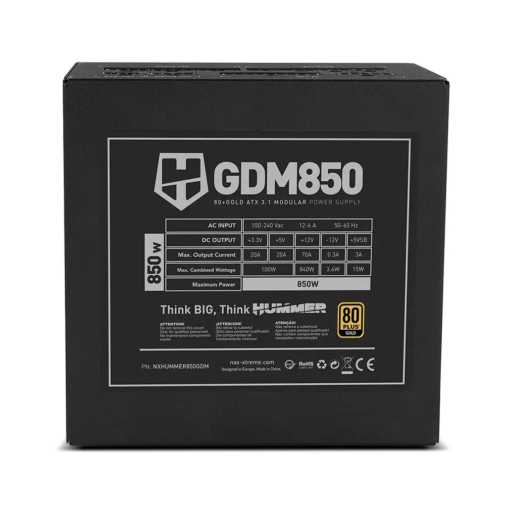 A fonte de alimentação Nox Hummer GDM 850W foi projetada para garantir um fornecimento de energia fiável e altamente eficiente, sendo ideal para sistemas de alto desempenho e gaming exigente. Com certificação 80 PLUS Gold e compatibilidade com ATX 3.1 e PCIe 5.1, esta fonte assegura até 90% de eficiência energética. O design modular com cabos planos e extra longos permite uma montagem limpa e otimizada, enquanto o ventilador de 120 mm com controlo PWM assegura funcionamento silencioso. O conector PCIe 5.1 12V-2x6 suporta placas gráficas de última geração, oferecendo potência estável e segura para qualquer configuração avançada.