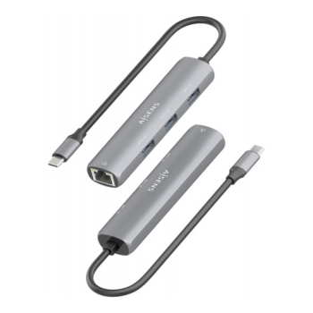 O adaptador Aisens ASUC-4P038-GR é uma solução versátil que combina um conversor de USB-C para Ethernet Gigabit com um hub USB 3.0 de três portas. Ideal para expandir a conetividade de dispositivos modernos com porta USB-C, oferece alta velocidade de transferência de dados, suportando até 1000 Mbps na rede e 5 Gbps via USB. Compatível com vários sistemas operativos, é uma ferramenta prática, compacta (15 cm) e de utilização imediata (plug & play) na maioria dos sistemas.