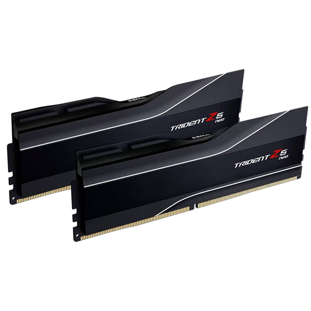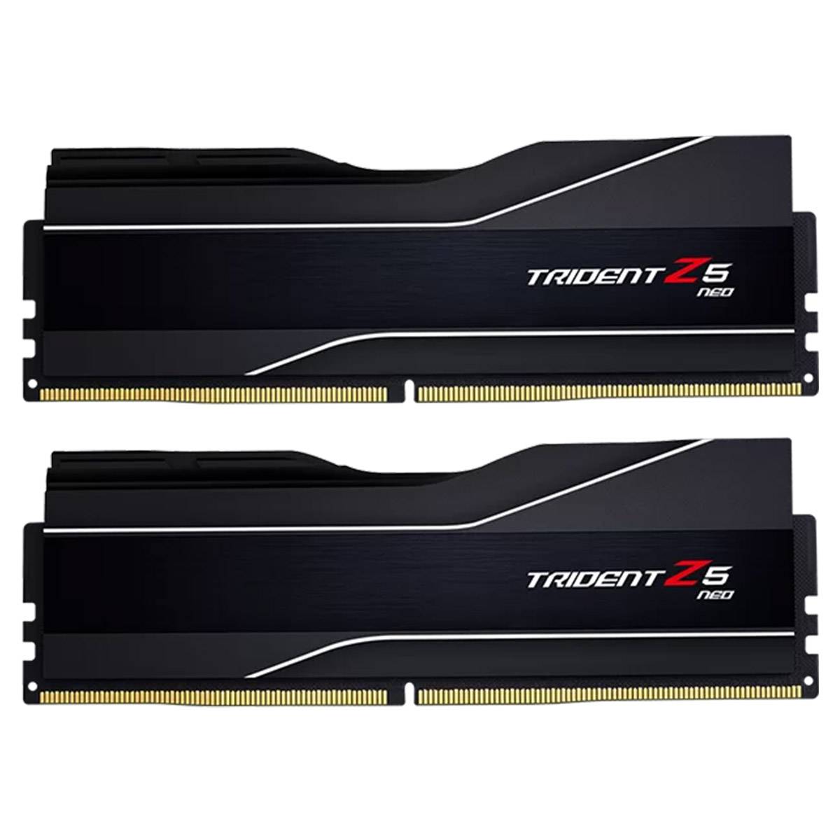 A memória RAM G.SKILL Trident Z5 Neo 32GB (2x16GB) DDR5-6000MHz oferece desempenho de topo para entusiastas e gamers que utilizam plataformas AMD Ryzen de última geração. Com suporte para perfis AMD EXPO e Intel XMP, esta memória facilita o overclocking direto a partir da BIOS, maximizando a velocidade e a eficiência do sistema. O design agressivo e aerodinâmico, com acabamento preto mate e detalhes em alumínio escovado, faz dela uma escolha visualmente impressionante para qualquer configuração moderna.
