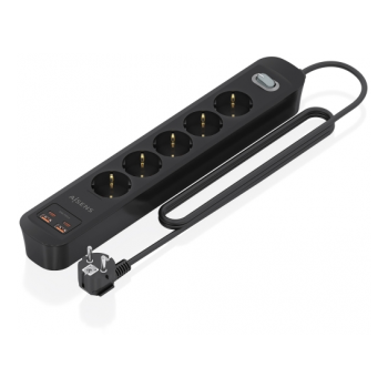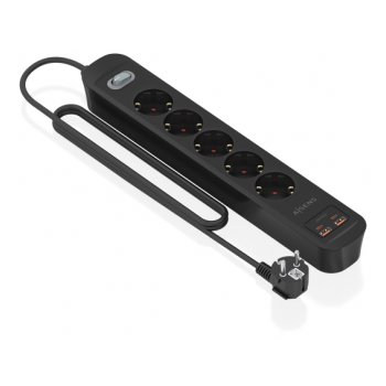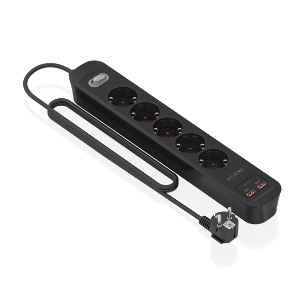 Régua Aisens 5 Tomadas Schuko e 2xUSB-C e 2xUSB-A com Switch on/off Preta