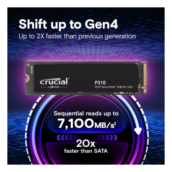 O SSD Crucial P310 de 500GB é uma solução de armazenamento de alto desempenho ideal para utilizadores exigentes, desde gamers a profissionais criativos. Com tecnologia Micron 3D NAND e interface PCIe 4.0 x4 NVMe, proporciona arranques ultra-rápidos, carregamento veloz de aplicações e excelente desempenho em tarefas como edição de vídeo e renderização 3D. O seu formato compacto M.2 2280 facilita a integração em portáteis e desktops modernos.