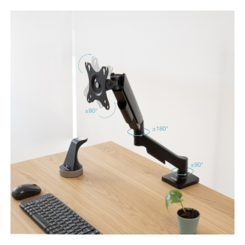 O suporte de mesa Tooq com braço articulado é uma solução robusta e versátil para monitores entre 13" e 32", permitindo uma configuração ergonómica e organizada do espaço de trabalho. Fabricado em aço de alta qualidade, este suporte oferece ajuste completo de altura, inclinação, rotação e orientação graças ao braço com pistão de gás. Suporta até 9 kg e é compatível com monitores curvos, oferecendo ainda gestão integrada de cabos para um ambiente mais limpo e funcional.