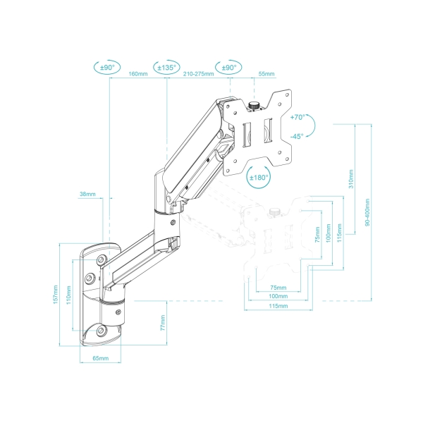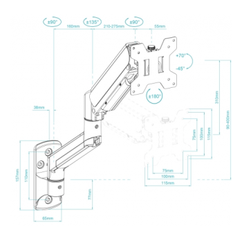 O suporte de parede com braço articulado da Tooq é uma solução robusta e funcional para montar monitores de 13" a 34" de forma segura e ergonómica. Equipado com um pistão de gás para um ajuste suave e preciso, permite inclinar, girar e rodar o monitor com facilidade. A estrutura em aço de alta qualidade garante durabilidade, enquanto o sistema de gestão de cabos ajuda a manter a instalação limpa e organizada. Ideal para espaços de trabalho ou entretenimento, suporta ecrãs planos ou curvos até 10 kg, com compatibilidade VESA.
