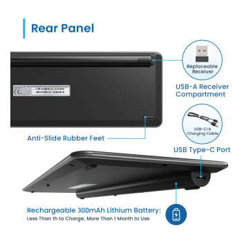 O teclado Ewent EW3297 Illuminated Wireless Multimode combina versatilidade, conforto e funcionalidade num design fino e silencioso. Ideal para escritórios ou uso doméstico, permite alternar facilmente entre até três dispositivos através de ligação Bluetooth dupla e wireless 2.4GHz com recetor incluído. As teclas de baixo perfil proporcionam uma escrita silenciosa, enquanto a retroiluminação com brilho ajustável garante uma utilização confortável em ambientes com pouca luz. A bateria recarregável de 300mAh com função de economia de energia prolonga a autonomia, tornando este teclado uma solução prática e eficiente.