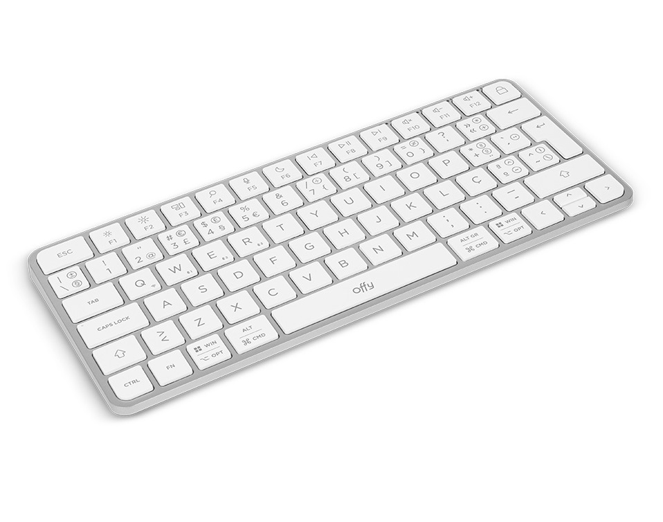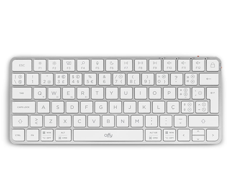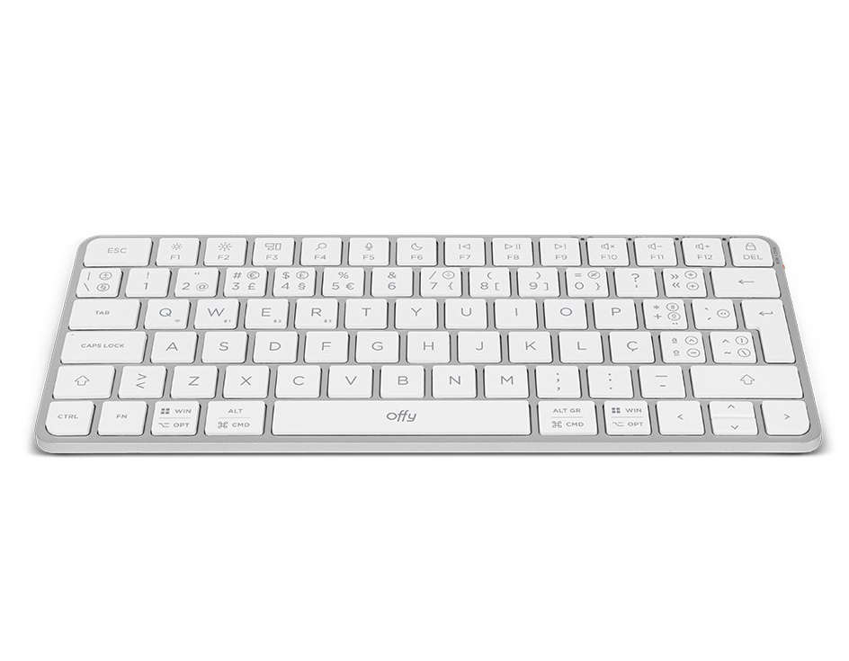O Teclado Offy Pixie Mini Wireless/Bluetooth PT Branco combina design minimalista e funcionalidades essenciais num formato ultracompacto. Ideal para quem precisa de um teclado leve, portátil e eficiente, oferece conectividade com até quatro dispositivos diferentes via Bluetooth 5.1 ou recetor USB 2.4 GHz. A estrutura fina ocupa pouco espaço na secretária, mantendo um ambiente de trabalho limpo e moderno, enquanto as teclas de atalho facilitam o controlo multimédia e aumentam a produtividade. Com autonomia até 150 horas, é perfeito para profissionais em movimento.