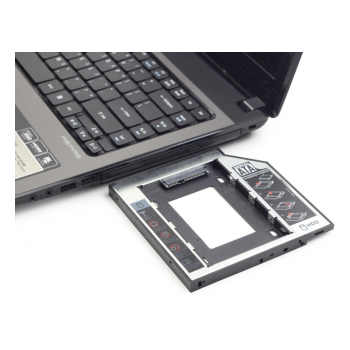 Adaptador Caddy da Germbird para discos HDD/SSD de 2.5" para montagem na baía do leitor ótico em portáteis. Converte o teu leitor de CD/DVD numa unidade de armazenamento adicional.