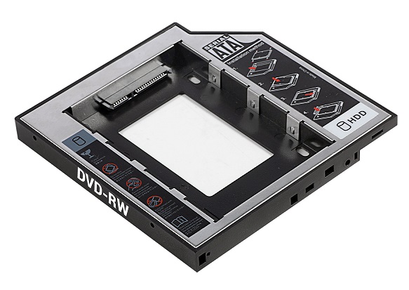 Adaptador para discos HDD/SSD de 2.5" para montagem na baía do leitor ótico em portáteis. Converta o seu leitor de CD/DVD numa unidade de armazenamento adicional.