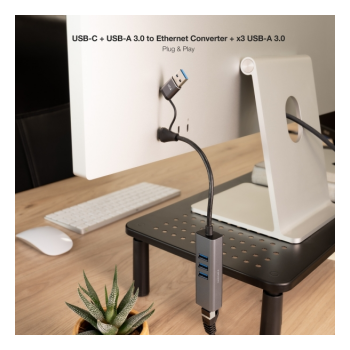 1 x Conversor USB-C/USB-A para RJ45 + 3xUSB-A