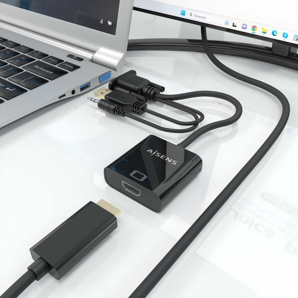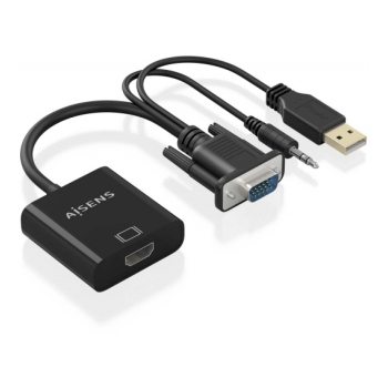 O Cabo Conversor Aisens SVGA + Áudio para HDMI com conectores SVGA macho, Jack 3.5 mm macho, USB-A macho e HDMI fêmea, é a solução ideal para ligar dispositivos com saída VGA a ecrãs HDMI, sem necessidade de atualizar o monitor. Com suporte para resoluções até 1080p e compatibilidade HDCP 1.1, garante uma transmissão de vídeo e áudio eficiente. O design plug and play permite uma instalação fácil e rápida, sem software adicional. Para garantir desempenho ideal em situações de sinal fraco, o conector USB-A fornece alimentação extra. É compacto, fiável e 100% testado.