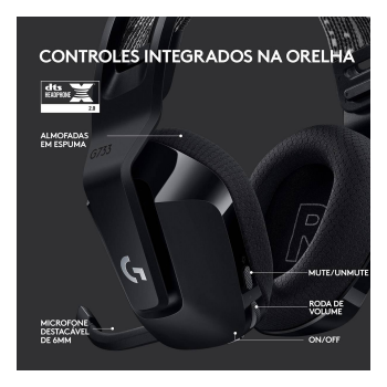 O Logitech G733 Lightspeed é um headset gaming sem fios leve, confortável e totalmente personalizável. Com tecnologia LIGHTSPEED, oferece até 29 horas de autonomia e alcance de até 20 metros, ideal para sessões prolongadas de jogo. A iluminação LIGHTSYNC RGB de zona dupla permite criar efeitos únicos com milhões de cores, enquanto a alça reversível e as almofadas em espuma viscoelástica garantem conforto extremo. O som é poderoso e claro graças aos drivers PRO-G de 40 mm, e o microfone com tecnologia Blue VO!CE oferece comunicação profissional. Compatível com PC e consolas como PS5, PS4 e Nintendo Switch via dongle USB, este headset combina liberdade, performance e estilo.