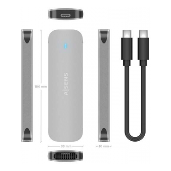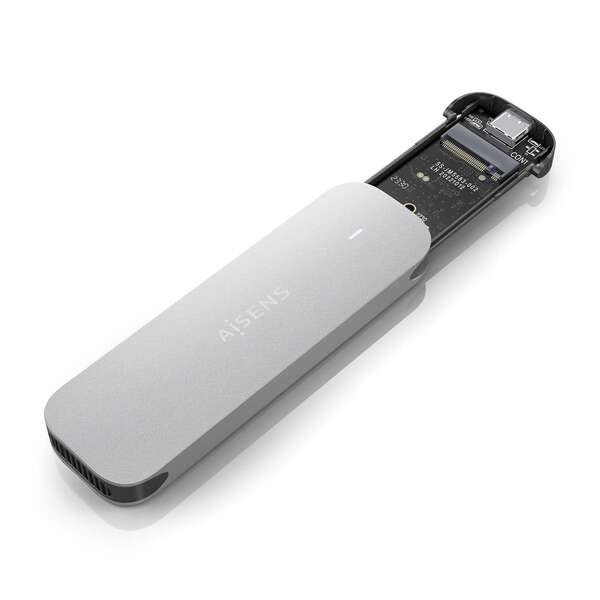 A Aisens Caixa Externa M.2 (NGFF) ASM2-025SL NVMe para USB 3.2 Gen2 é uma solução de elevado desempenho concebida para utilizadores exigentes que procuram rapidez e fiabilidade no acesso aos seus SSD NVMe. Com um design moderno em alumínio na cor prata, oferece não só um aspeto elegante como também uma dissipação térmica eficiente. A instalação extremamente rápida, sem necessidade de ferramentas ou parafusos, e o funcionamento Plug and Play garantem máxima conveniência, permitindo transferências de dados até 10Gbps de forma simples e eficaz.