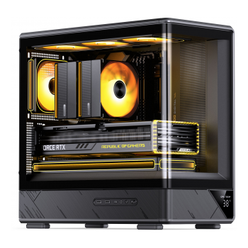 A caixa Micro-ATX Jonsbo D200 Preto combina um design inovador com vidro temperado duplo sem colunas visíveis, oferecendo uma estética panorâmica e clean. Otimizada para motherboards com cablagem oculta, proporciona uma montagem organizada e visualmente impecável. Apesar do tamanho compacto, tem excelente capacidade de refrigeração e compatibilidade com hardware de alto desempenho.