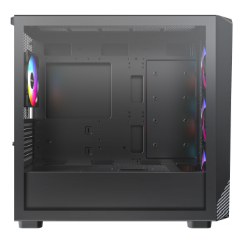 A Caixa Micro-ATX Montech X5M ARGB foi concebida para utilizadores que procuram um equilíbrio entre formato compacto, elevado desempenho térmico e estética gaming moderna. Mantendo o ADN da série X5, oferece ampla compatibilidade de hardware, suporte avançado para radiadores até 360 mm e iluminação ARGB integrada, tudo num chassis elegante com painel lateral em vidro temperado.
