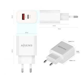 O carregador Aisens 20W em branco é uma solução prática e moderna para carregar dispositivos através de USB-C e USB-A, ideal para smartphones, tablets, câmaras, portáteis e muito mais. Equipado com tecnologia inteligente AI, reconhece automaticamente o protocolo do dispositivo para uma carga rápida e segura. Suporta os principais padrões como PD3.0 e QC3.0, permitindo carregamento simultâneo de dois dispositivos com proteção contra sobrecarga e curto-circuito, oferecendo máxima segurança e eficiência.