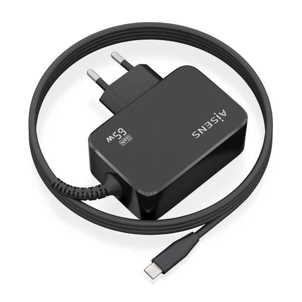 O carregador Aisens GaN USB-C/PD de 65W combina potência, eficiência e portabilidade para fornecer carregamentos rápidos e seguros a uma ampla gama de dispositivos. Com um design moderno e um cabo USB-C de 1,8 metros incluído, é ideal para uso diário, tanto em casa como em viagem. A tecnologia GaN proporciona maior eficiência energética, reduz o calor gerado e permite um formato mais compacto. Inclui um chip inteligente que ajusta automaticamente a saída conforme o dispositivo, garantindo compatibilidade e desempenho. Com suporte para PD3.0, PPS e outros protocolos de carregamento, é uma escolha versátil e fiável.