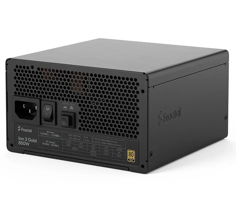 A fonte de alimentação ATX Fractal Design Ion 3 Gold 850W oferece uma solução poderosa, silenciosa e altamente eficiente para sistemas modernos e exigentes. Com certificação 80 Plus Gold e compatibilidade com o padrão ATX 3.1, esta fonte está preparada para suportar as mais recentes placas gráficas, incluindo conexões PCIe Gen5 através do conector 12V-2x6. O design totalmente modular com cabos UltraFlex facilita a montagem limpa e organizada, enquanto a ventoinha Momentum de 140 mm, com modo semi-passivo, garante operação silenciosa sob cargas leves. Capacitores japoneses de alta durabilidade completam um conjunto robusto e fiável para builds de alto desempenho.
