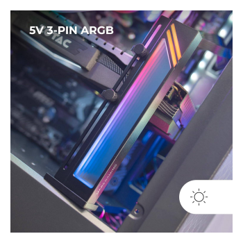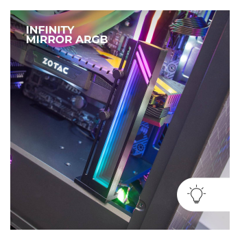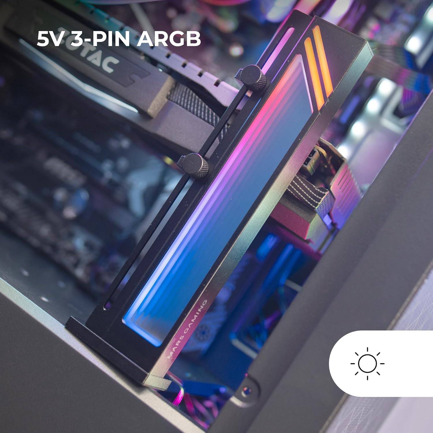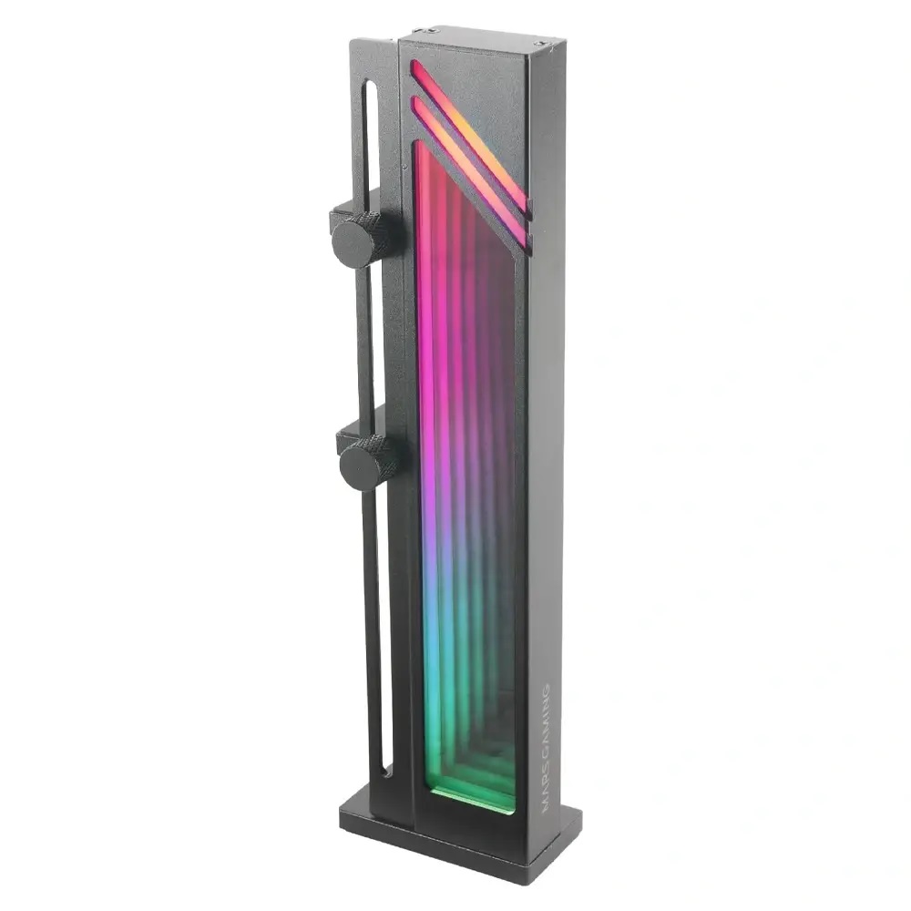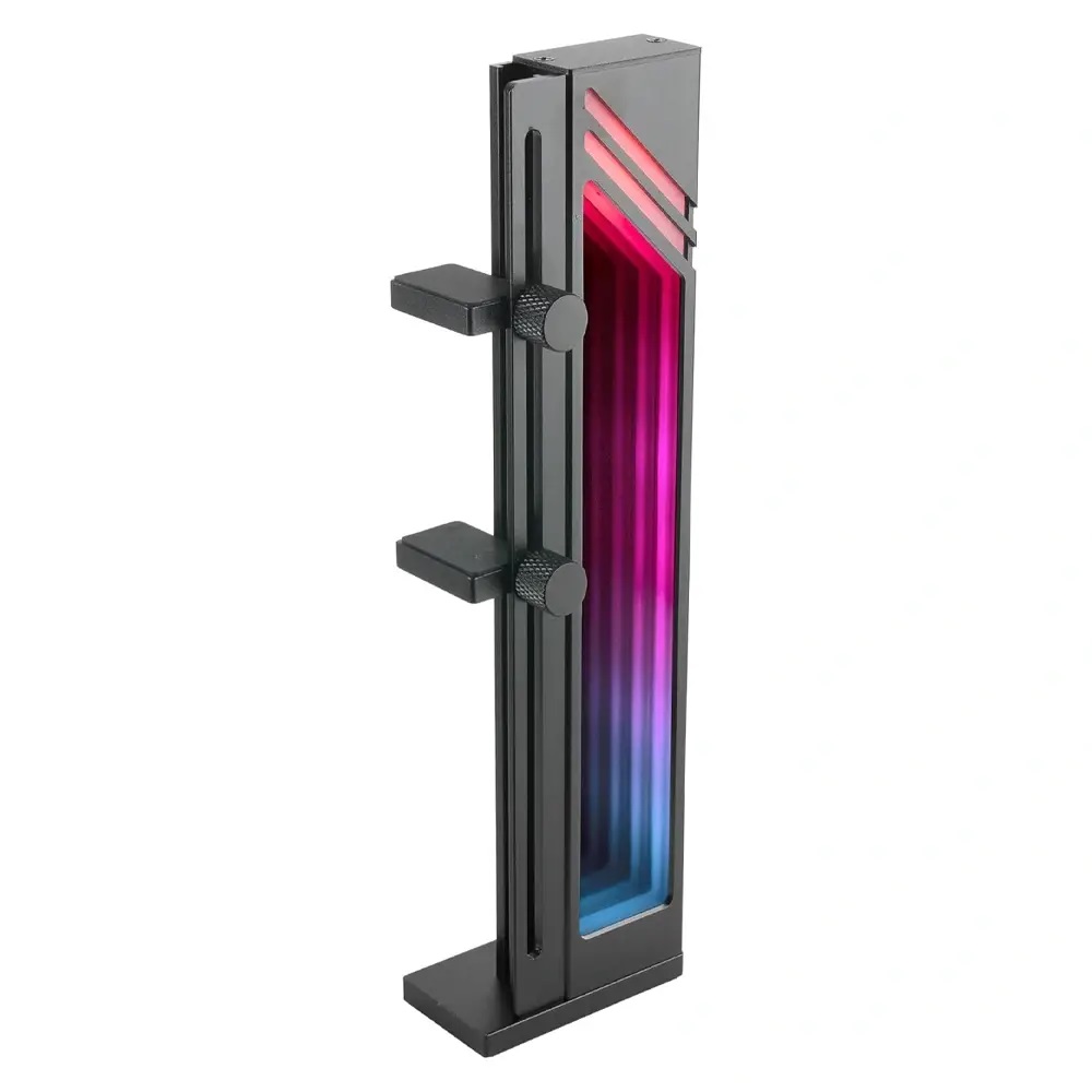 O suporte vertical Mars Gaming MCA-GCB foi desenvolvido para oferecer estabilidade e estilo ao seu setup, mantendo a sua placa gráfica segura enquanto adiciona um efeito visual impressionante. Com uma base magnética antiderrapante e estrutura em alumínio resistente, garante firmeza e durabilidade. O destaque vai para o espelho com iluminação ARGB Infinity Mirror, que cria um efeito de profundidade visual único e totalmente personalizável, elevando a estética do seu PC.