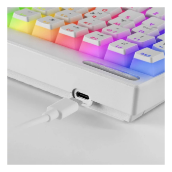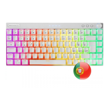 O Mars Gaming MKCloud White é um teclado mecânico premium compacto de 75%, ideal para quem procura portabilidade sem abdicar da performance. Com estrutura branca elegante, iluminação RGB Chroma personalizável e keycaps PBT pudding, oferece uma experiência visual impressionante. A conectividade tripla (USB-C, 2.4GHz e Bluetooth 5.0) garante compatibilidade com múltiplas plataformas. Equipado com switches mecânicos Outemu SQ Blue à prova de pó, proporciona precisão tátil e longa durabilidade, sendo perfeito tanto para jogos como para produtividade.
