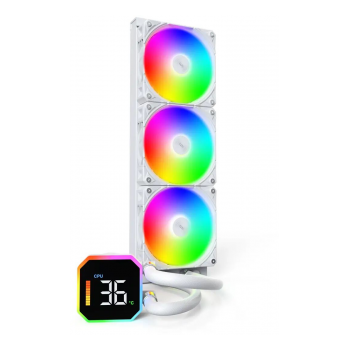 O Montech HyperFlow Digital 360 é um cooler líquido AIO de 360 mm concebido para utilizadores que procuram arrefecimento de alto desempenho, visual moderno e monitorização prática do sistema. Equipado com uma bomba com ecrã digital integrado, permite acompanhar em tempo real a temperatura do CPU e da GPU, oferecendo mais controlo durante gaming, criação de conteúdos ou cargas intensivas. Com radiador de alta densidade, três ventoinhas ARGB de 120 mm e ampla compatibilidade com plataformas Intel e AMD, esta solução alia eficiência térmica, instalação simplificada e uma estética premium em branco.